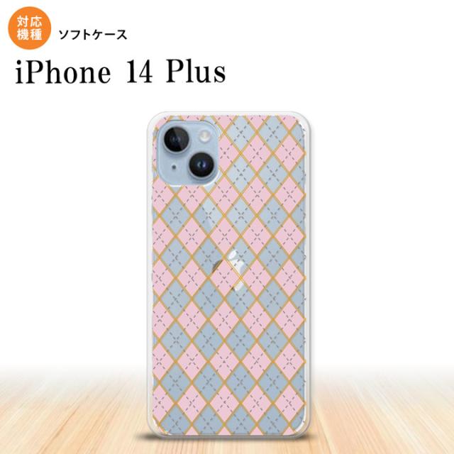 I14PL iPhone14 plus スマホケース 背面ケースソフトケース アーガイル クリア ピンク