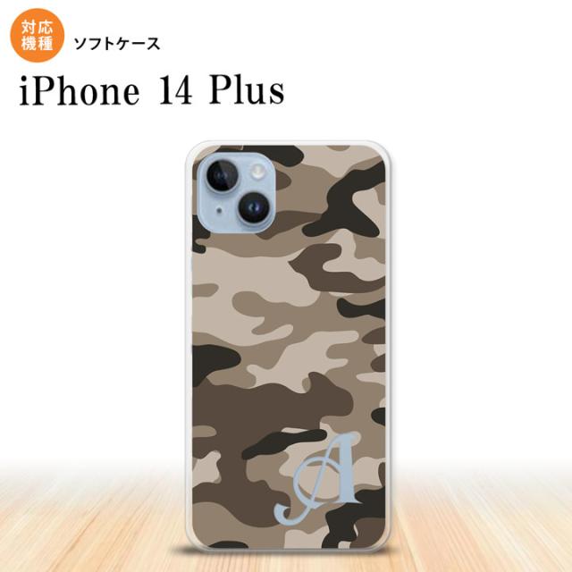 I14PL iPhone14 plus スマホケース 背面ケースソフトケース ウッドランド 迷彩 B 茶 +アルファベット