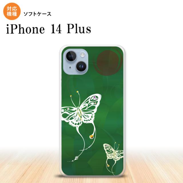 I14PL iPhone14 plus スマホケース 背面ケースソフトケース 蝶 和柄 緑 メンズ レディース nk-i14pl-tp1555