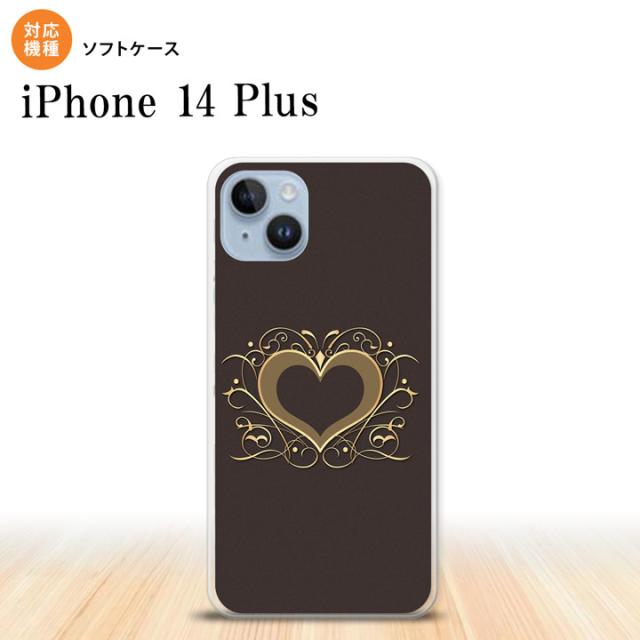 I14PL iPhone14 plus スマホケース 背面ケースソフトケース ハート 飾り 茶 メンズ レディース nk-i14pl-tp611