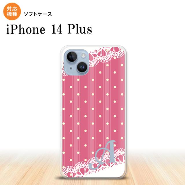 I14PL iPhone14 plus スマホケース 背面ケースソフトケース ドット レース C ピンク +アルファベット