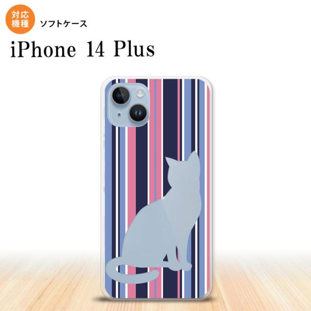 I14PL iPhone14 plus スマホケース 背面ケースソフトケース 猫 ボーダー A 青ピンク メンズ レディース nk-i14pl-tp965