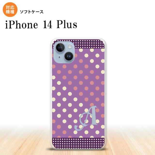 I14PL iPhone14 plus スマホケース 背面ケースソフトケース ドット 水玉 C 紫 ピンク +アルファベット