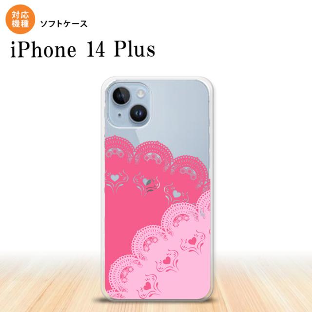 I14PL iPhone14 plus スマホケース 背面ケースソフトケース レース B ピンク