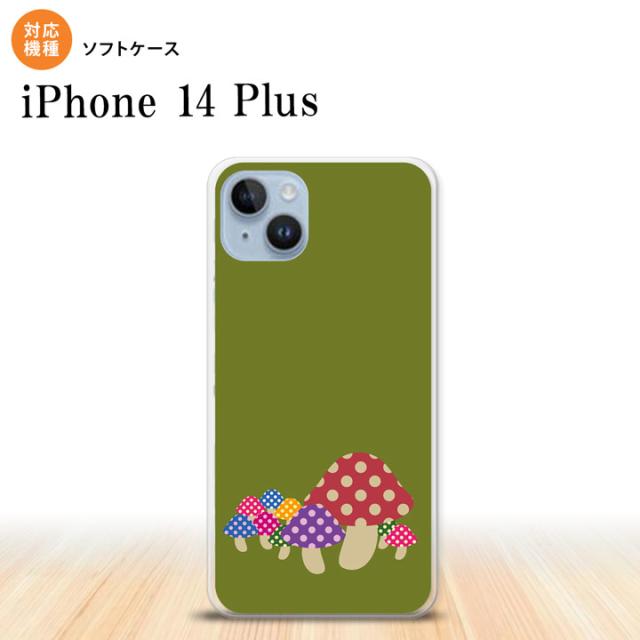 I14PL iPhone14 plus スマホケース 背面ケースソフトケース きのこ 緑 メンズ レディース nk-i14pl-tp743