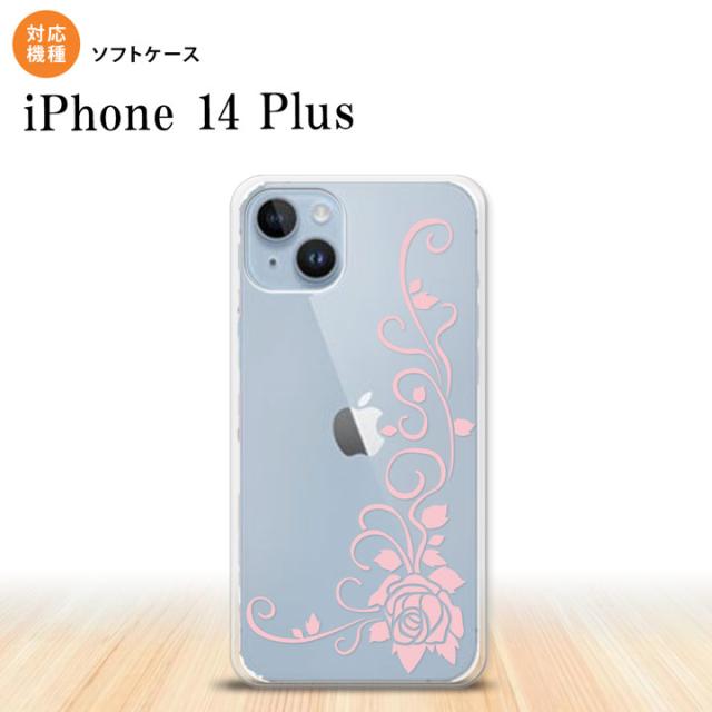 I14PL iPhone14 plus スマホケース 背面ケースソフトケース バラ B クリア ピンク
