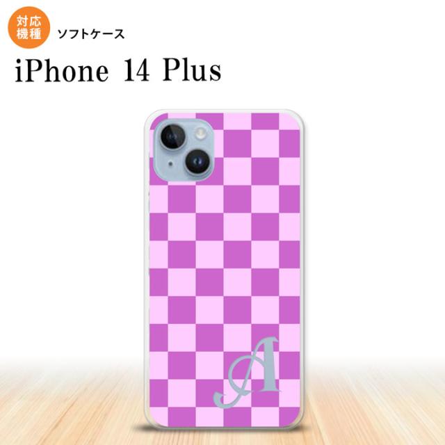 I14PL iPhone14 plus スマホケース 背面ケースソフトケース スクエア ピンク 紫 +アルファベット