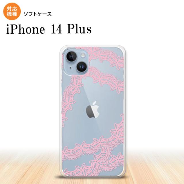 I14PL iPhone14 plus スマホケース 背面ケースソフトケース レース 帯 B ピンク
