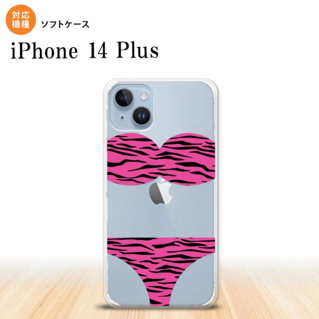 I14PL iPhone14 plus スマホケース 背面ケースソフトケース 虎柄パンツ ピンク