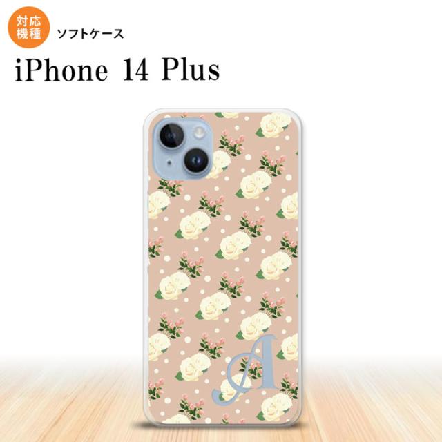 I14PL iPhone14 plus スマホケース 背面ケースソフトケース 花柄 バラ ドット ベージュ +アルファベット