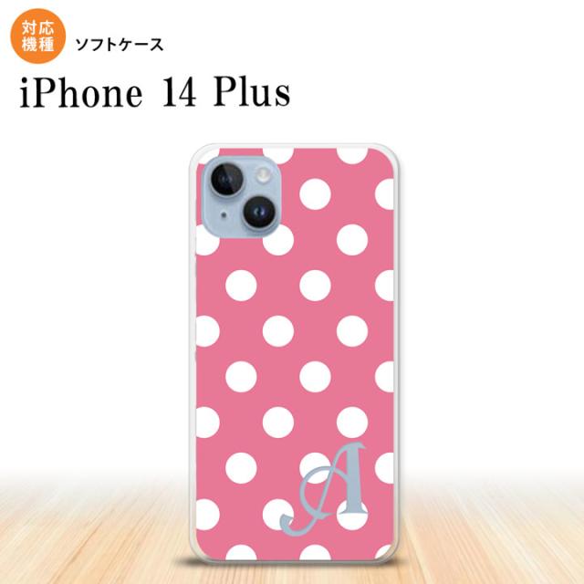I14PL iPhone14 plus スマホケース 背面ケースソフトケース ドット 水玉 B ピンク 白 +アルファベット