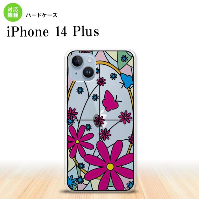 I14PL iPhone14 plus 背面ケース カバー ステンドグラス風 おしゃれ ガーベラ ピンク ステンドグラス風 かわいい おしゃれ 背面ケース nk-i14pl-sg01