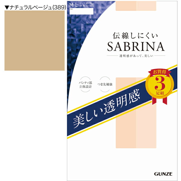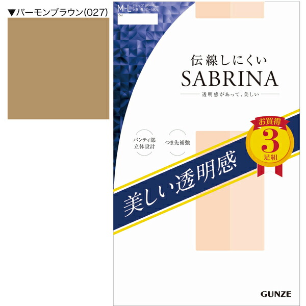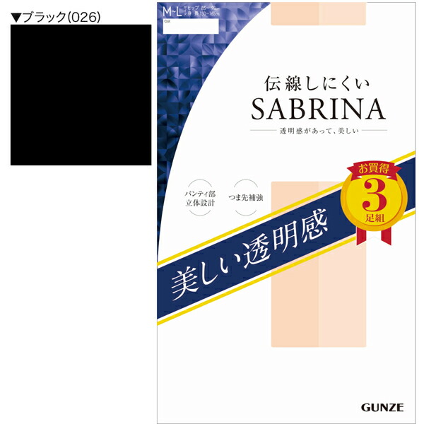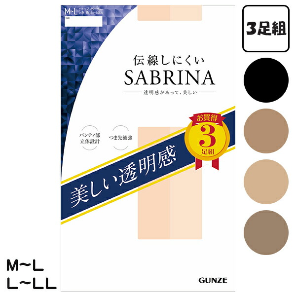 グンゼ サブリナ ストッキング 3足組 美しい透明感 個包装 M-L/L-LL | 伝線しにくい ナイロン レディース パンスト インナー SP811 GUNZE SABRINA