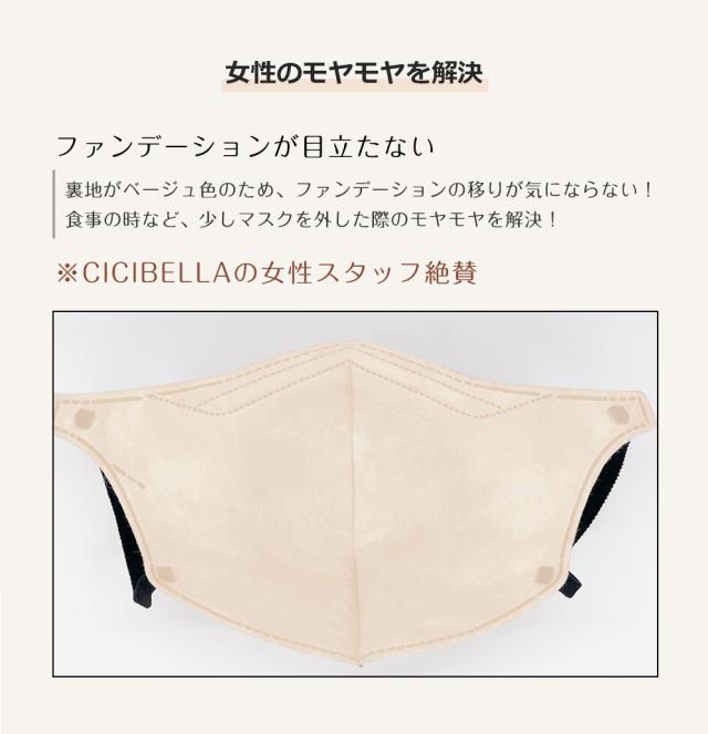 CICIBELLA 5D MASKは高密度フィルターを採用し、ウイルスや飛沫などを99%カットする高機能マスクです。
