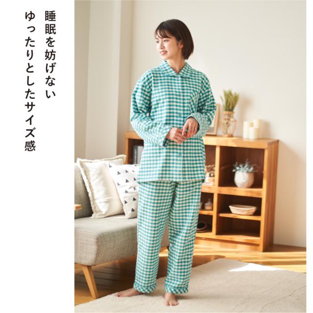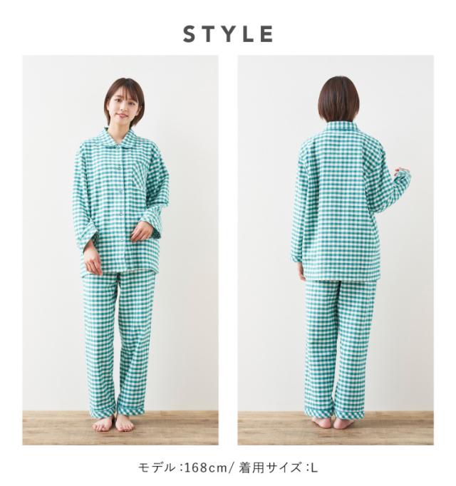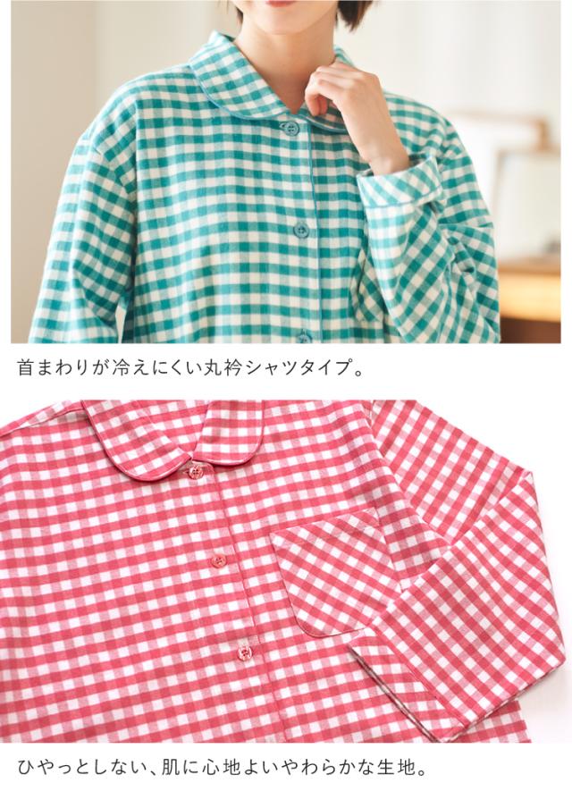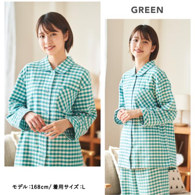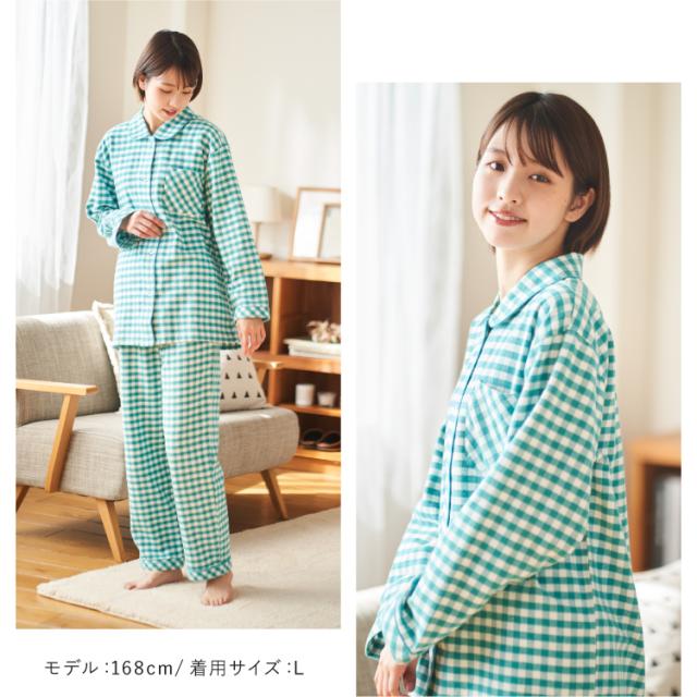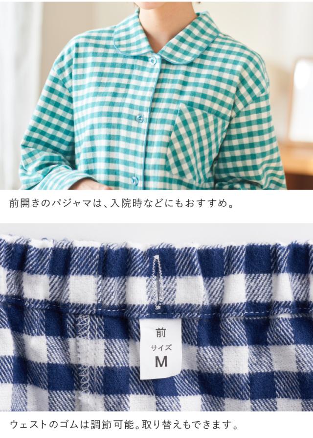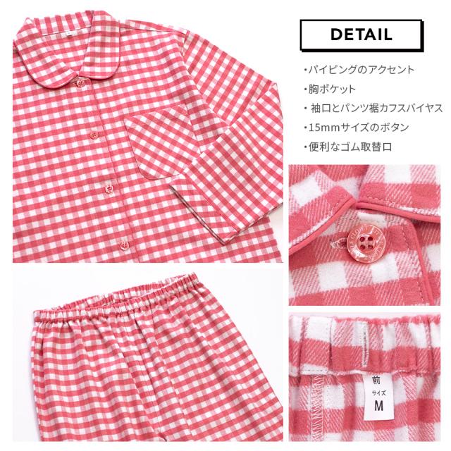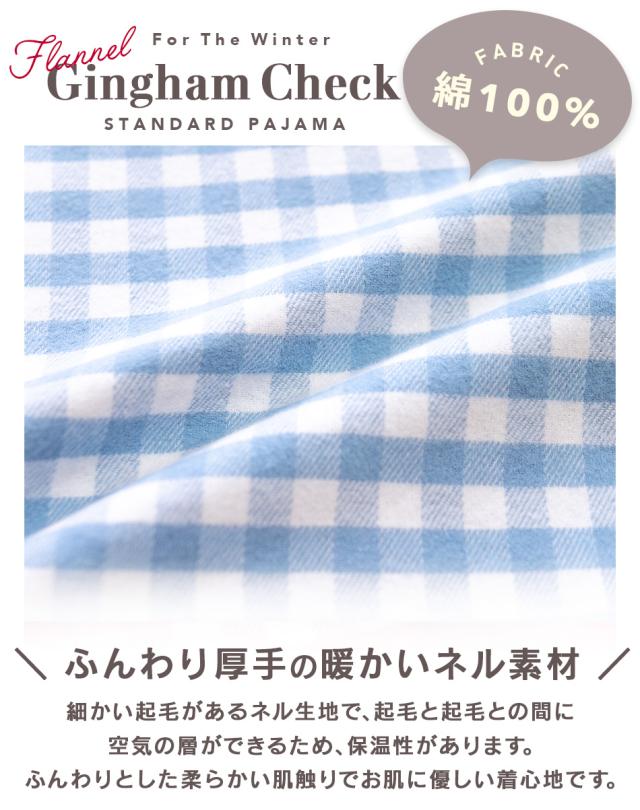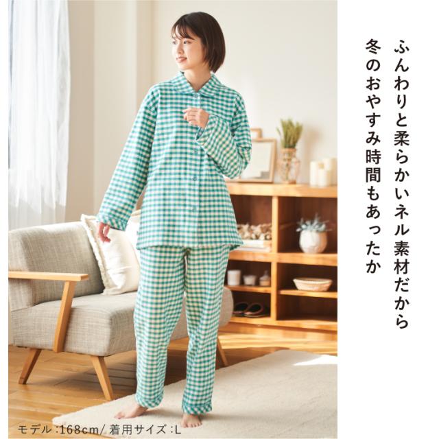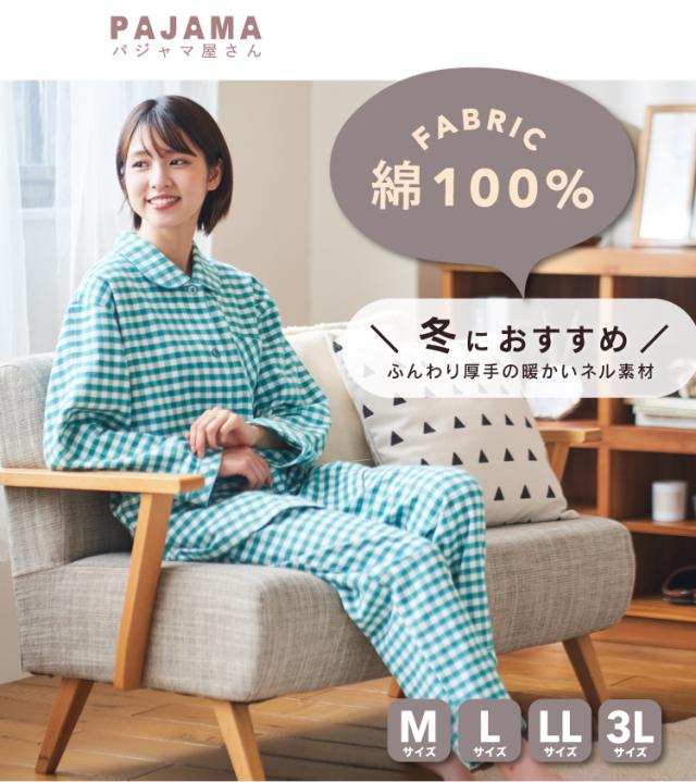パジャマ レディース 綿100% 長袖 冬 前開き ボタン 厚手のネル起毛 先染め ギンガムチェック柄 S M L LL 3L おそろい プレゼント 敬老の日