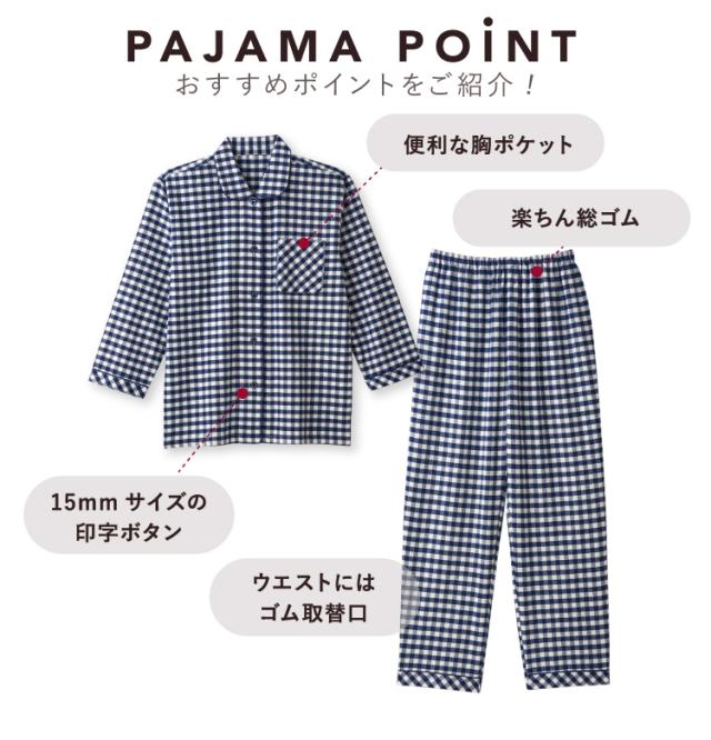 シンプルなデザインなので年齢を選ばず、幅広い年代におすすめなパジャマです。