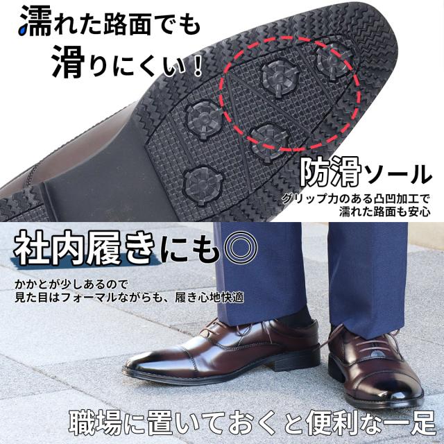 ソールは濡れた路面も滑りにくい防滑仕様や、ゆったりと履ける幅広3E仕様などビジネスマンにとってうれしい機能も詰まっています。