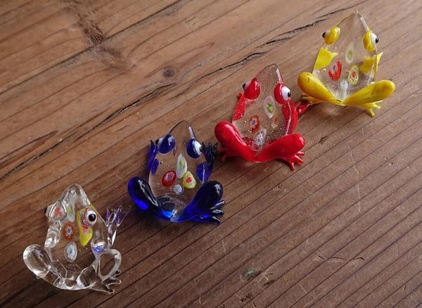 | 背中のシェブロンが可愛らしいカエルたち ガラス 置物 かえる カエル 蛙 縁起物 【要確認】 手作業のため、多少の個体差がございます。 |