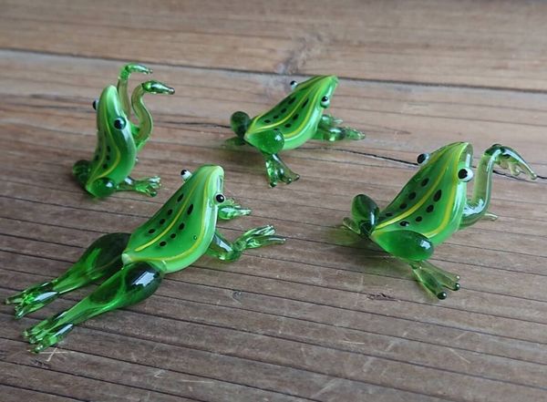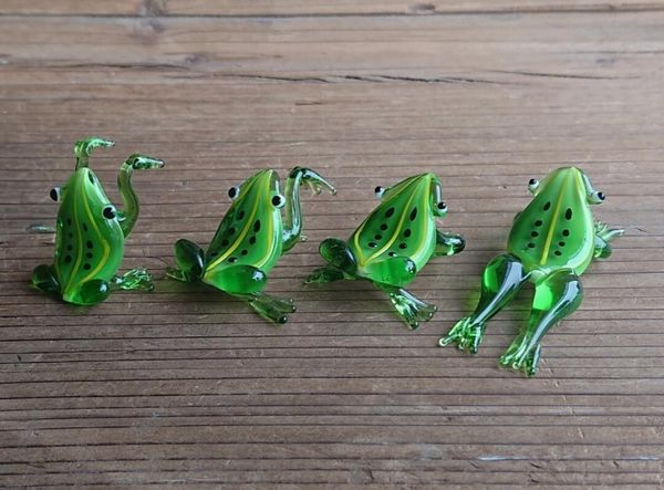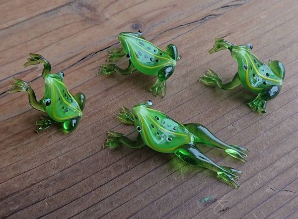オブジェ 置き物 インテリア雑貨 家具 インテリア 緑が映えるカエルたち 4匹セット ガラス 置物 かえる カエル 蛙 縁起物 【送料無料】