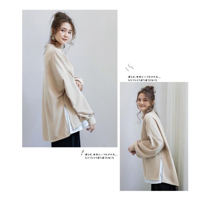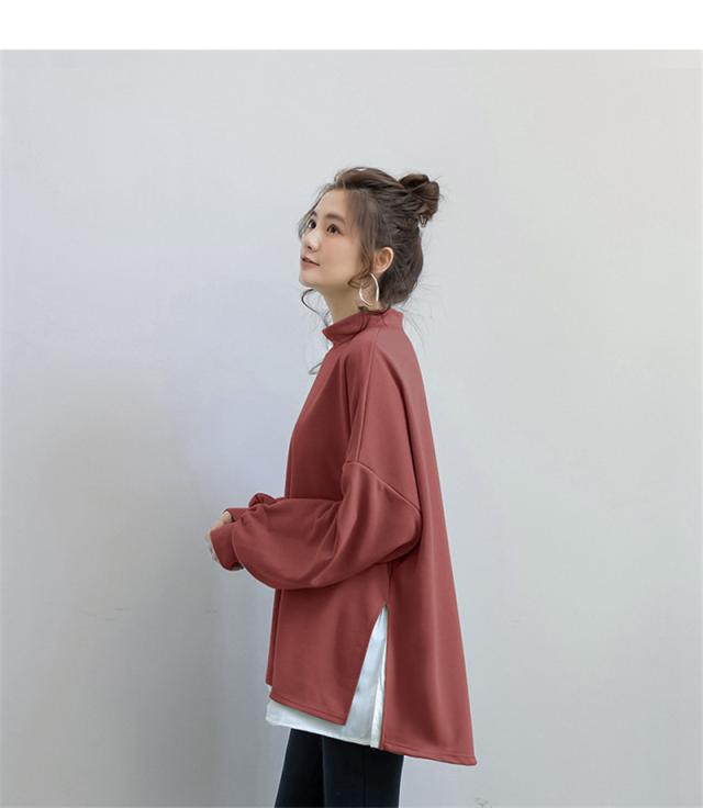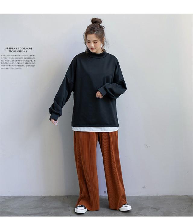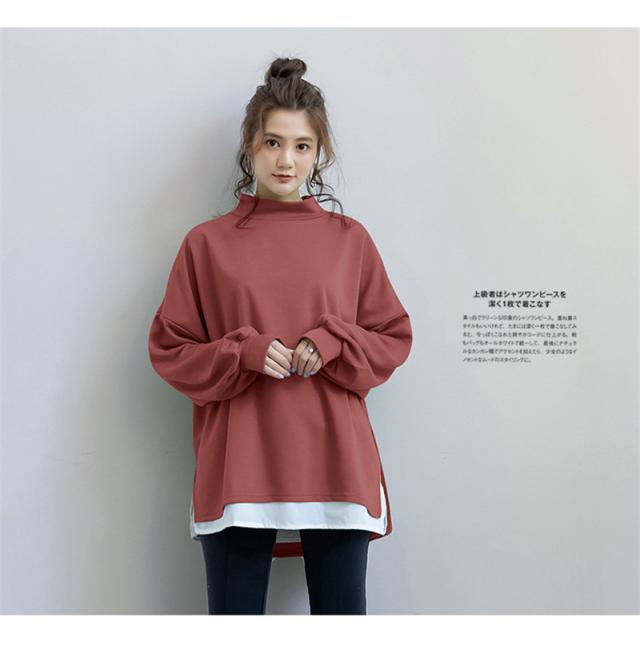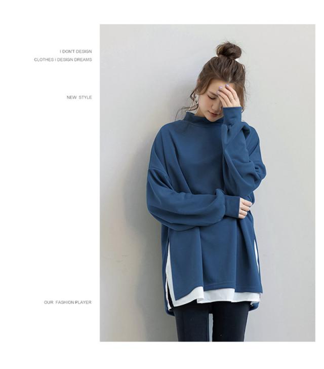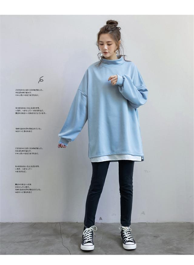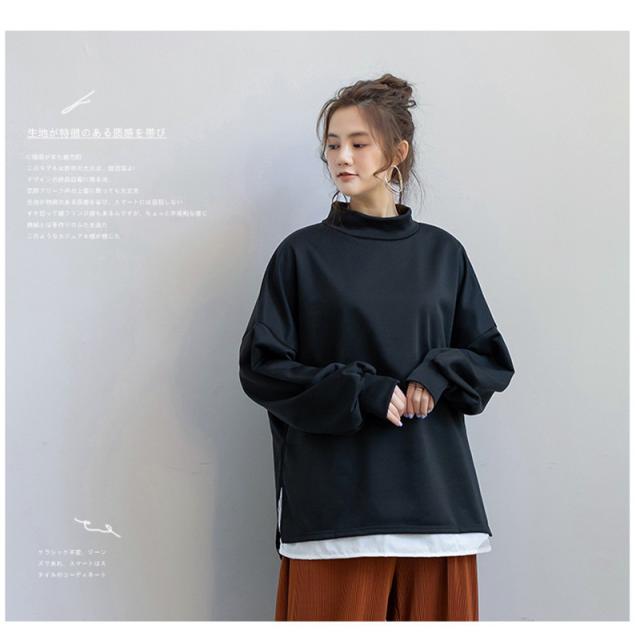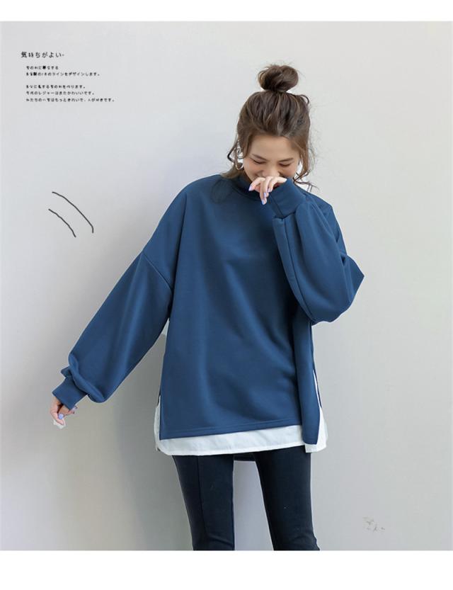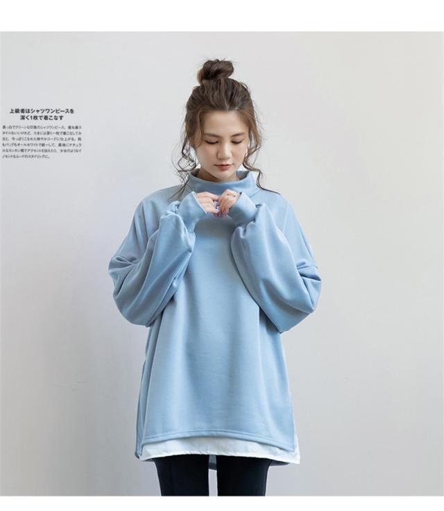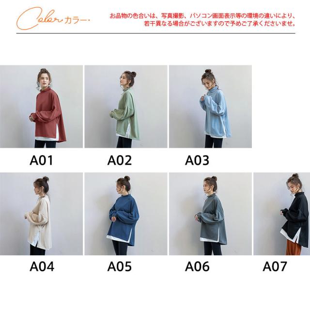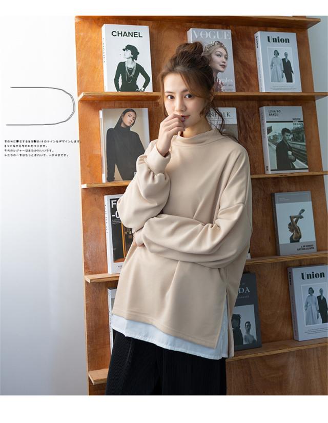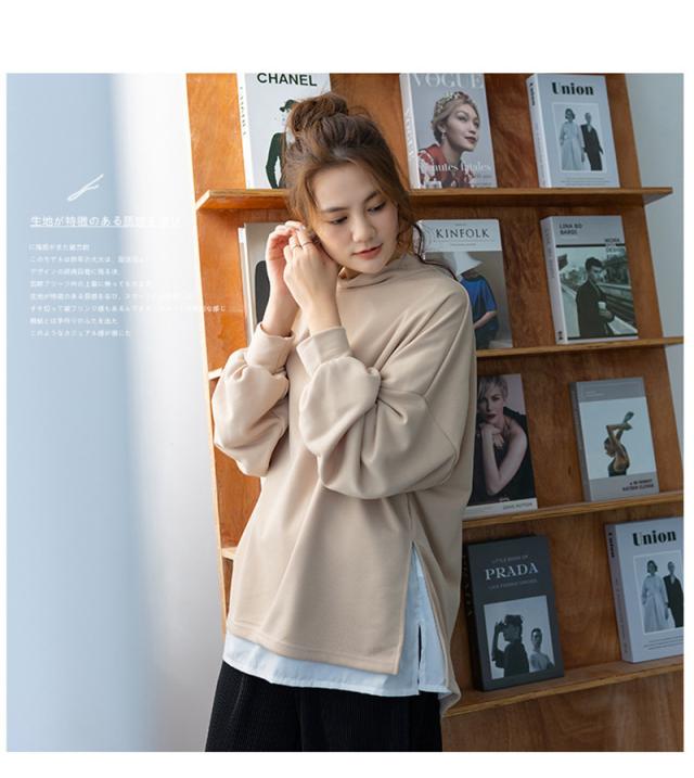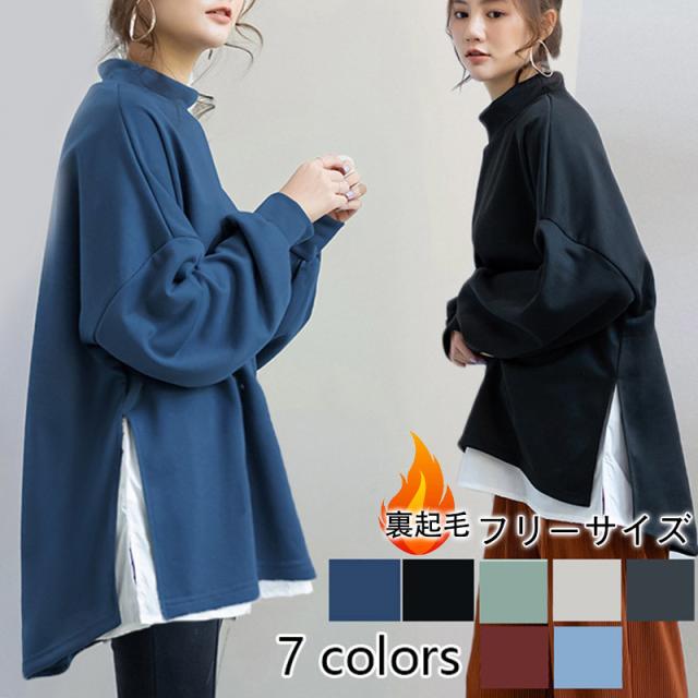 パーカー レディース 裏起毛 プルオーバー フェイクレイヤード ハイネック クルーネック スリット ゆったり 大きいサイズ 切り替