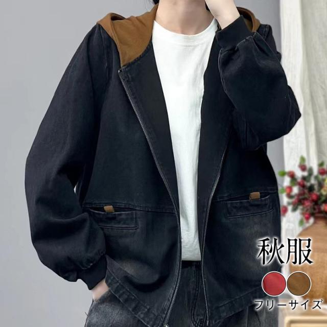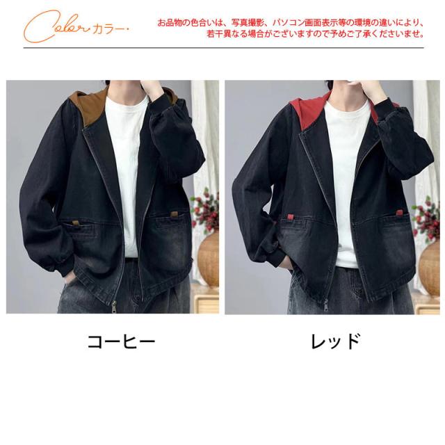 デニムジャケット レディース ジャケット Gジャン パーカー アウター ブルゾン ジップアップ 羽織 フード付き 着痩せ ゆったり