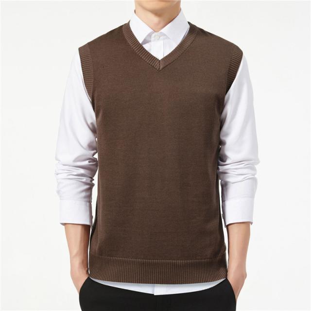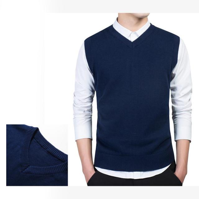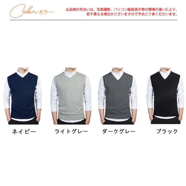 ニットベスト メンズ Vネック 綿 吸水吸湿 毛玉ができにくい スクールベスト ビジネス ゆったり 制服 シンプル 無地 通学 通