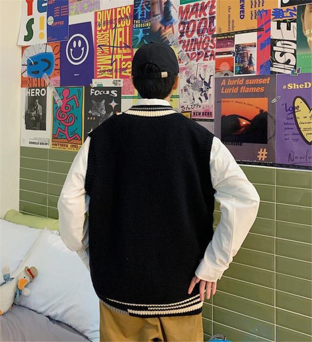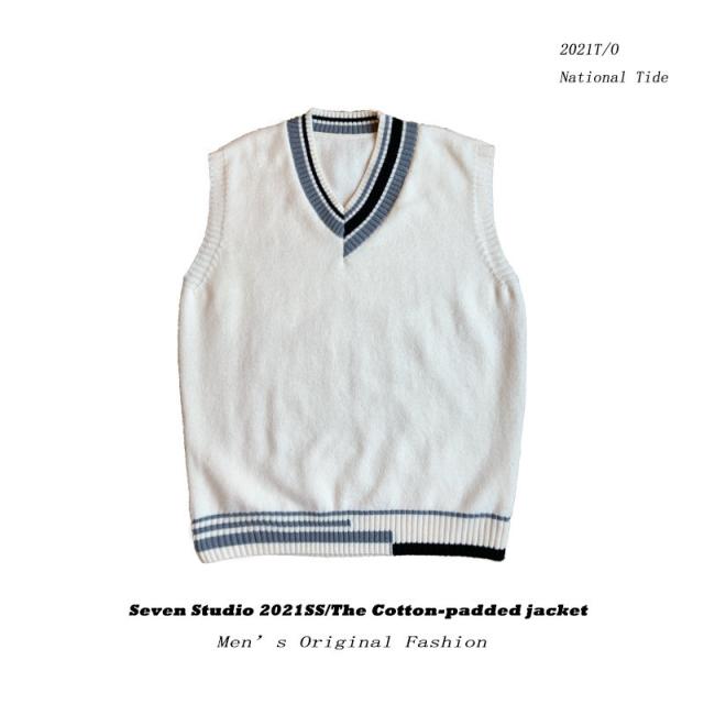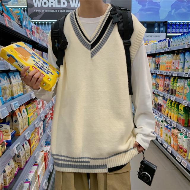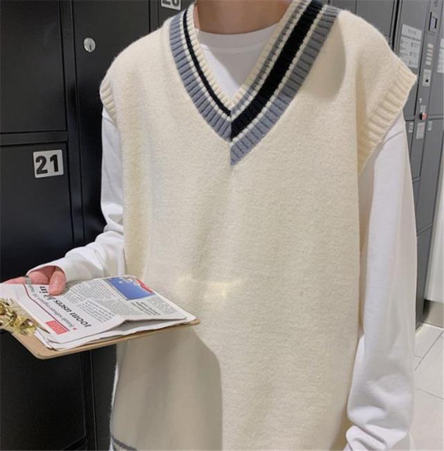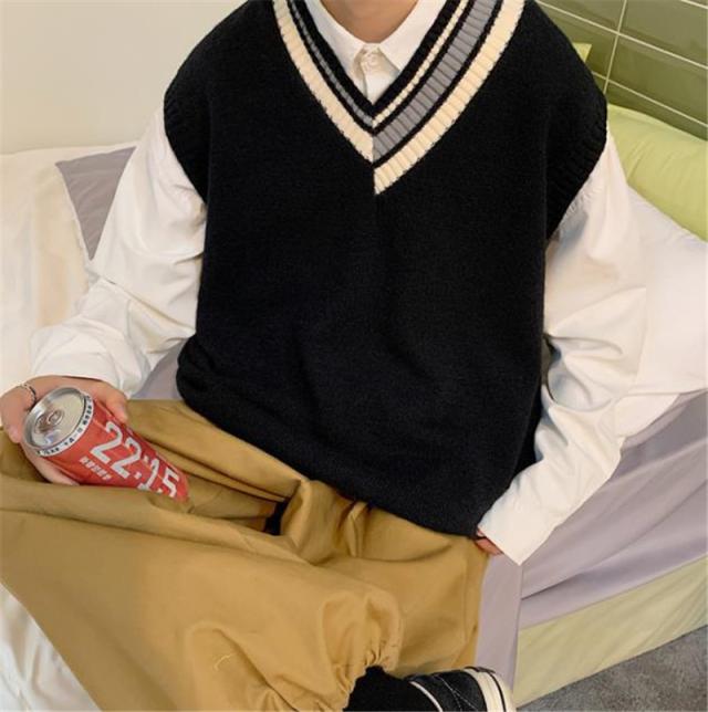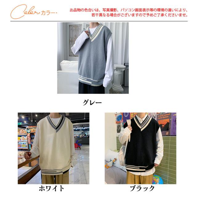ニットベスト メンズ Vネック プルオーバー スクールベスト セーター ビジネス ゆったり 制服 シンプル 無地 通学 原宿風 オ