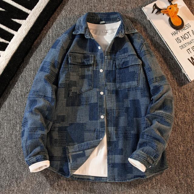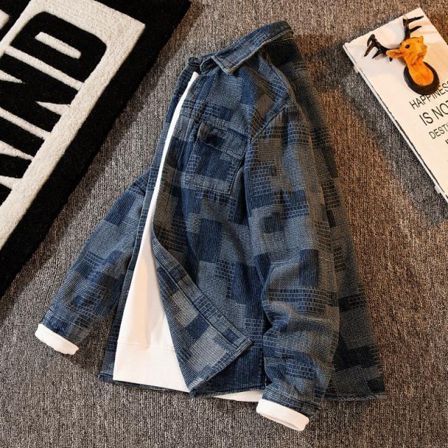 デニムジャケット メンズ ジージャン Gジャン ヴィンテージ アウター 羽織 チェック柄 カジュアル ゆったり スリム 着痩せ 春