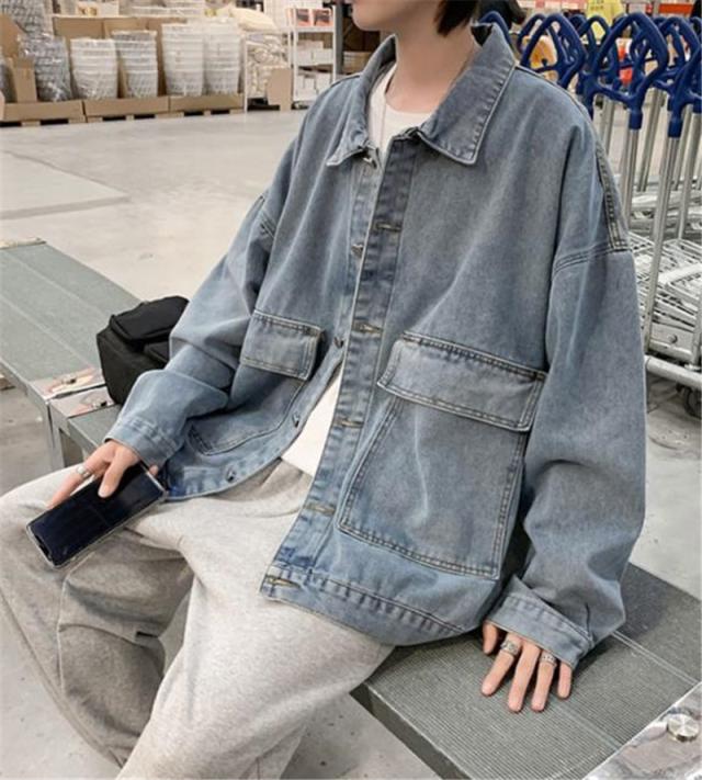 デニムジャケット メンズ Gジャン アウター 羽織 ジャケット カジュアル ユーズド加工 ゆったり 大きいサイズ 着痩せ 韓国風