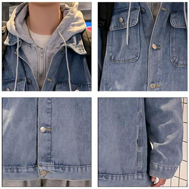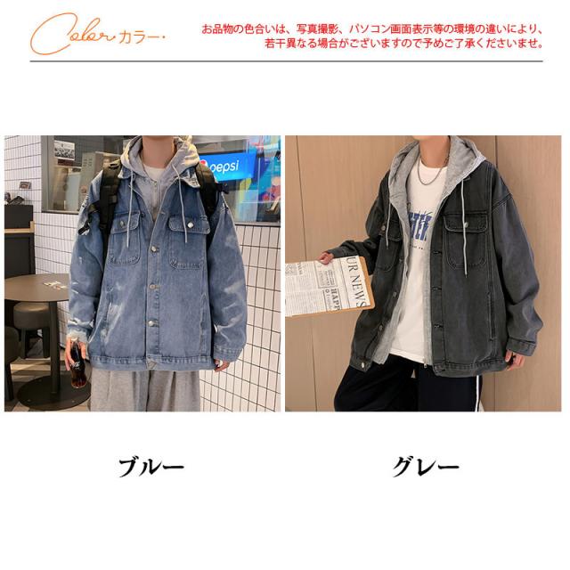 デニムジャケット メンズ Gジャン パーカー フェイクレイヤード ジージャン アウター フード付き 羽織 カジュアル 紳士服 ゆっ