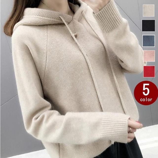 パーカー ニット レディース セーター ニットパーカー 長袖 プルオーバー フード付き 無地 ベーシック カジュアル ゆったり 秋