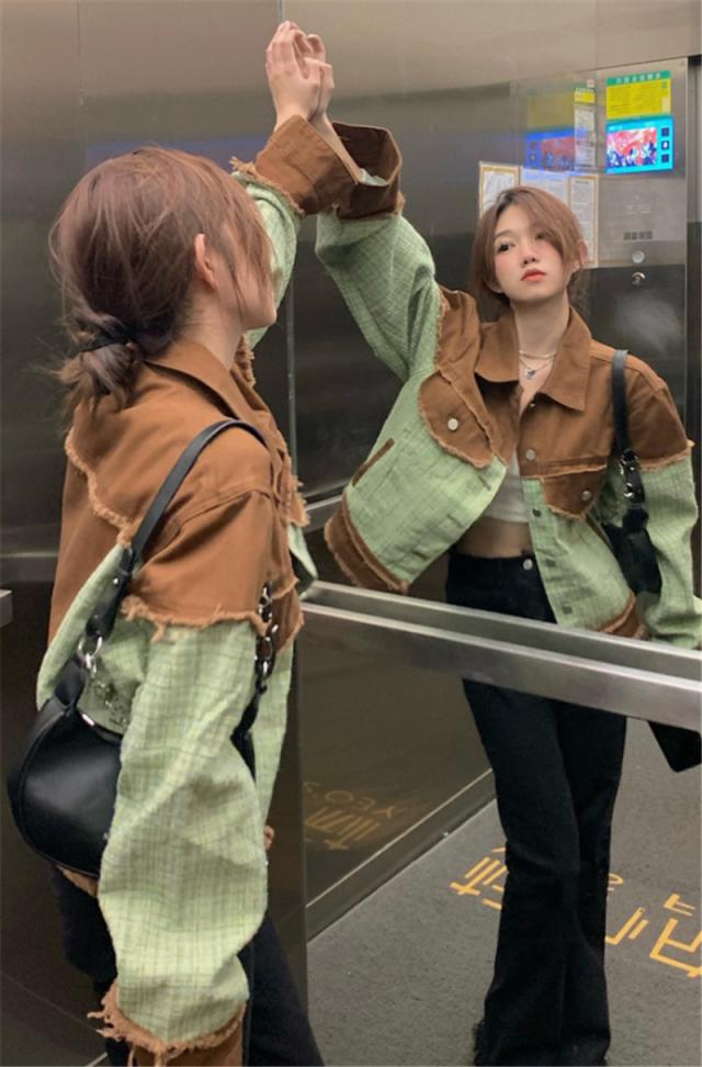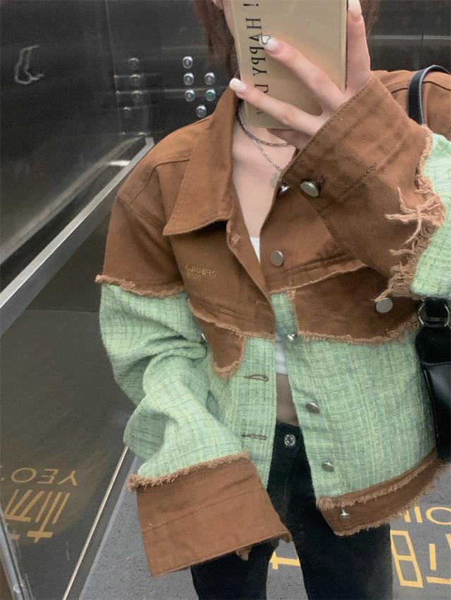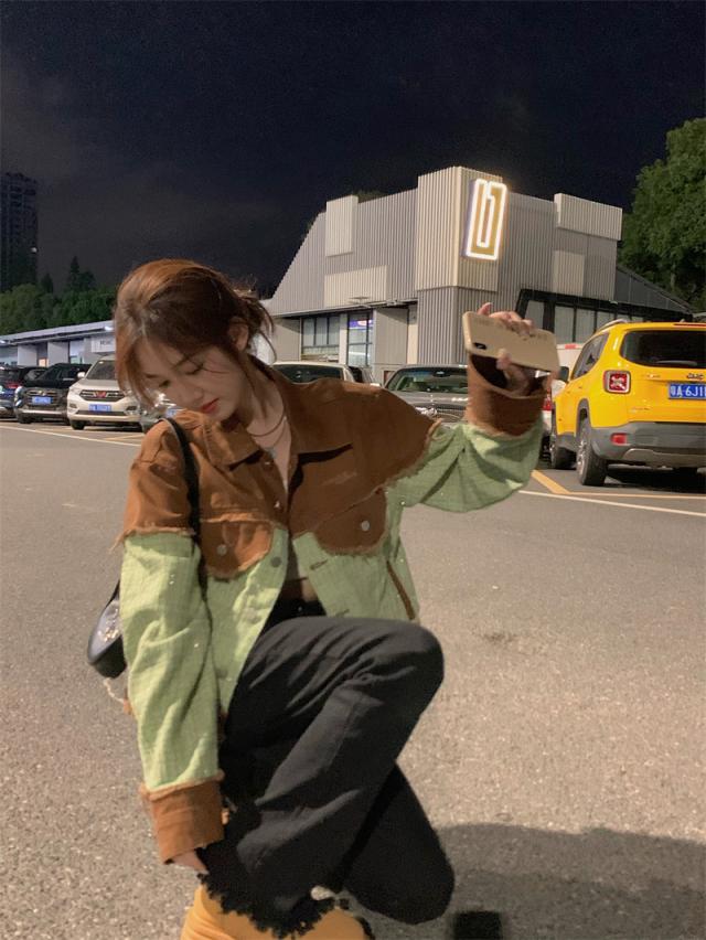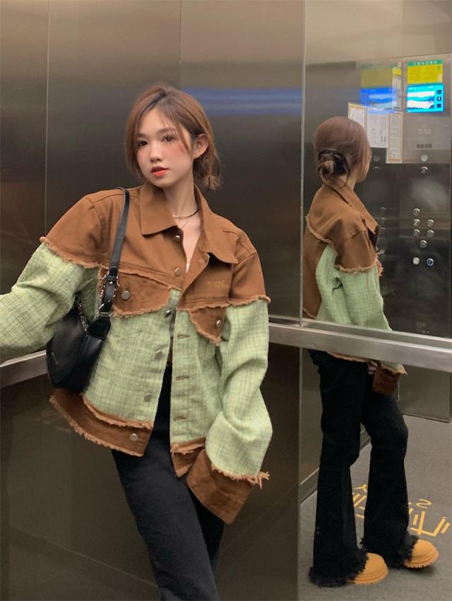 デニムジャケット レディース Gジャン ジャケット アウター 羽織 切り替え ダメージ加工 バイカラー ゆったり カジュアル 着痩