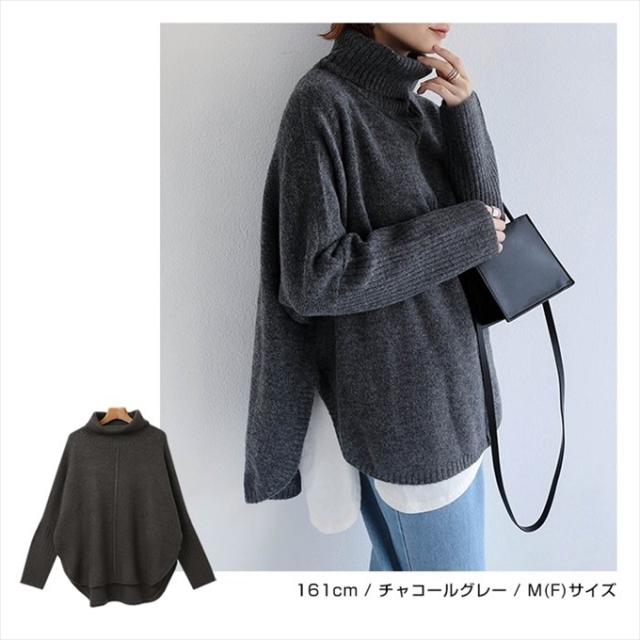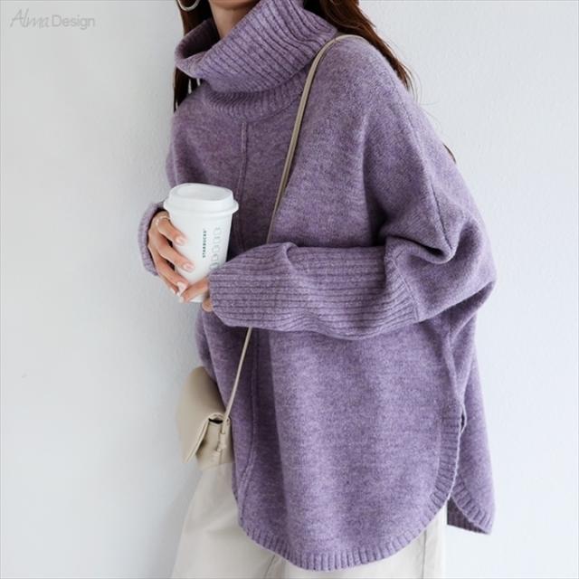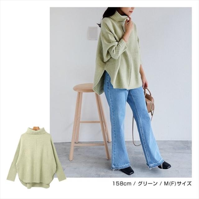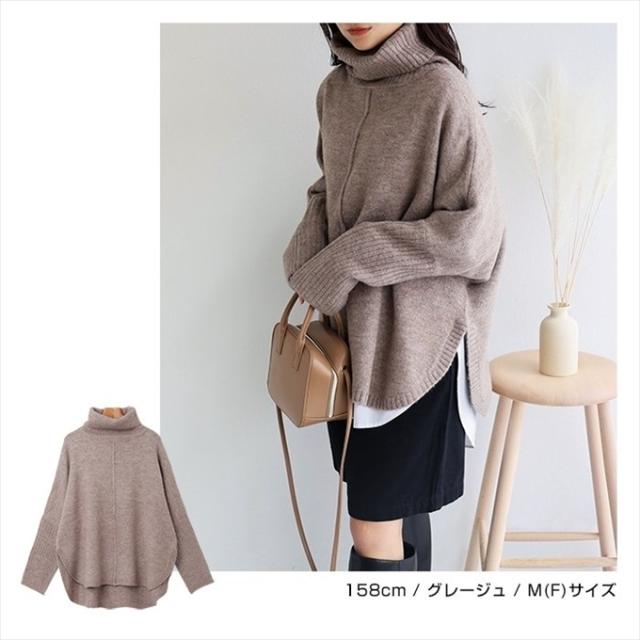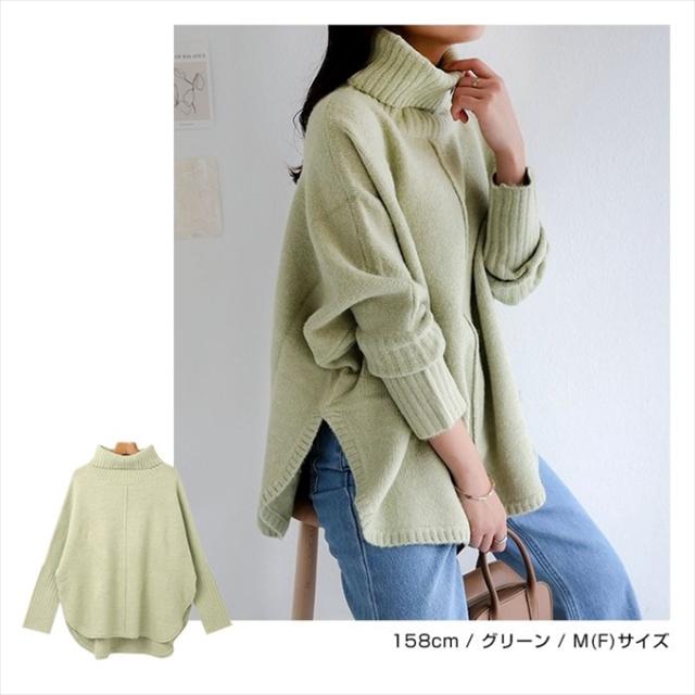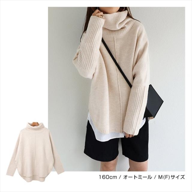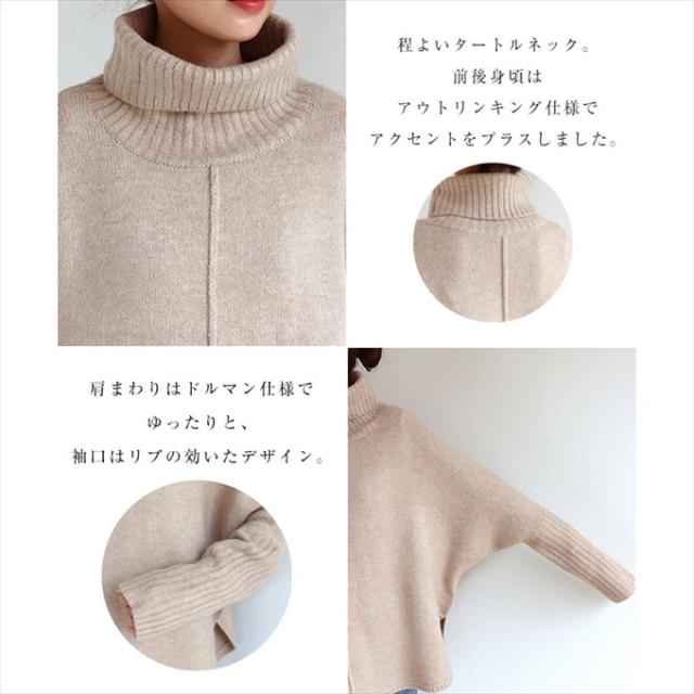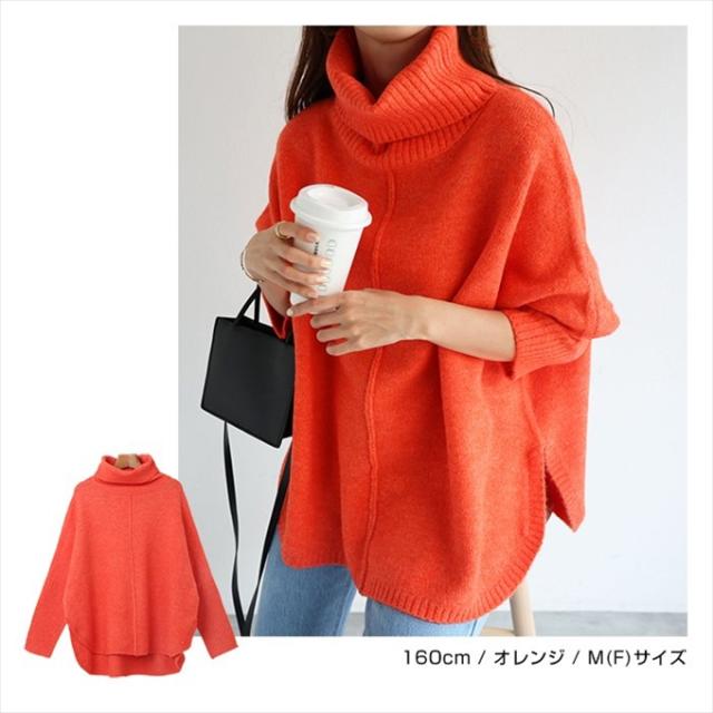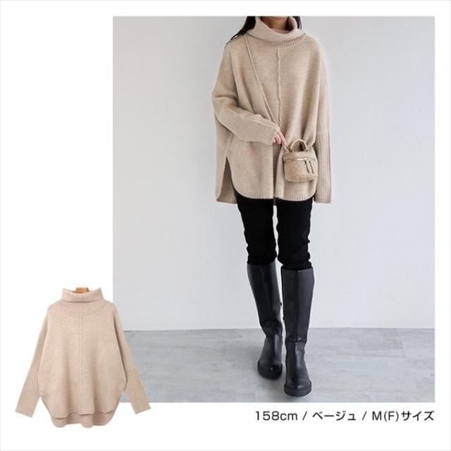 天竺編み オーバーサイズ ラウンドヘム タートルネック ポンチョ ニットトップス レディース 体型カバー アウトリンキング 暖か 体型カバー 大人 女性 きれいめ おしゃれ カジュアル ナチュラル オフィス 女性 TOPS 大人ファッション 春 秋 冬 秋冬 ニットトップス 6001658