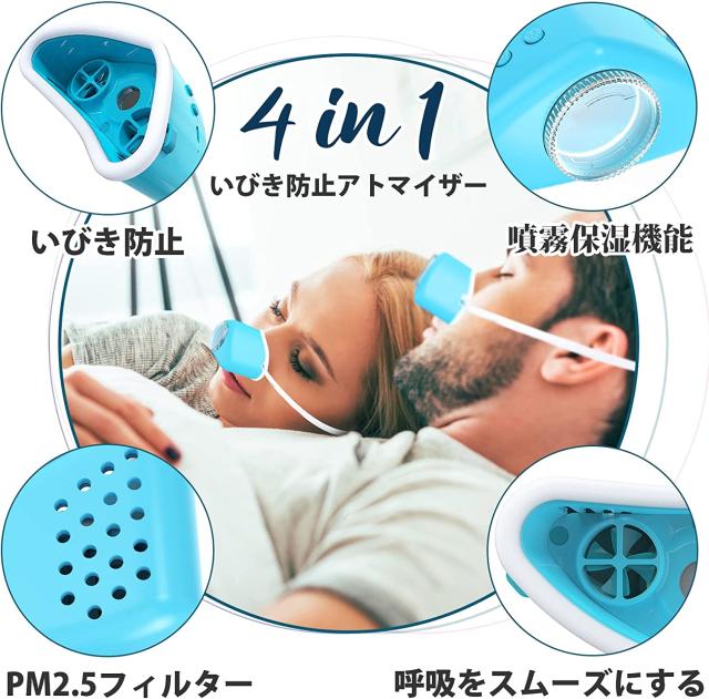 4in1 いびき防止装置 いびき防止グッズ 電子噴霧 いびき防止装置 調整可能な風力いびきストッパー アトマイゼーション&水分補