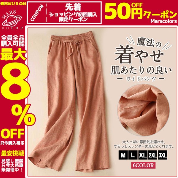 ワイドパンツ レディース ボトムス ガウチョパンツ フェミニン ゆったり ズボン 涼しい ストレート 柔らかい きれいめ 綿麻風 送料無料