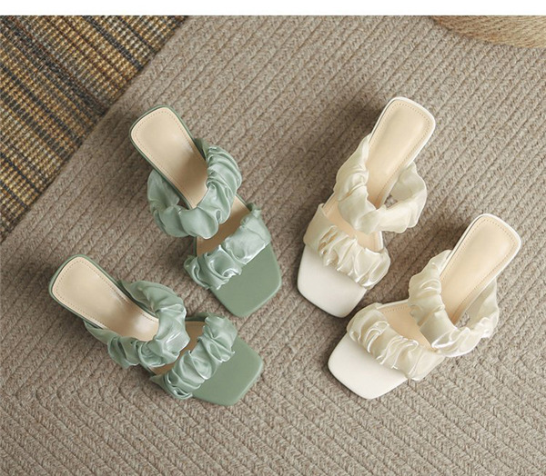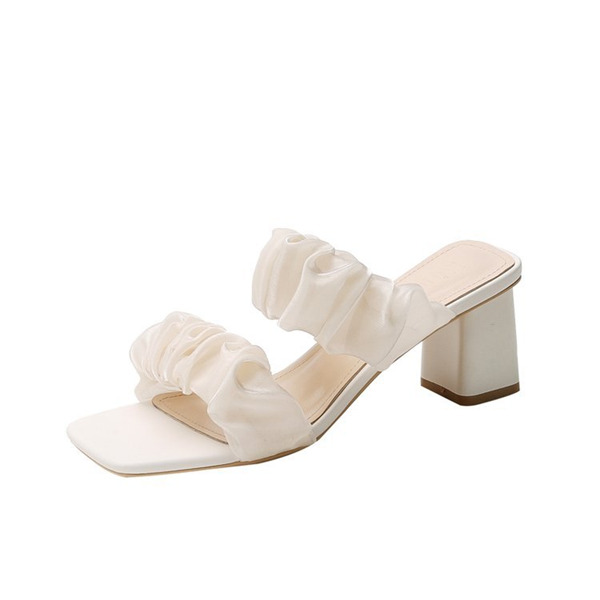 爆売中 ミュール クリアサンダル レディース サンダル 太めヒール スリッポン フラット パンプス 履きやすい シューズ オープントゥ 新作