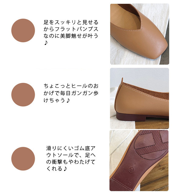 パンプス レディース シューズ スクエアトゥ ローヒール バレエシューズ ぺたんこ フラット くない 激安 走れる オフィス 軽量