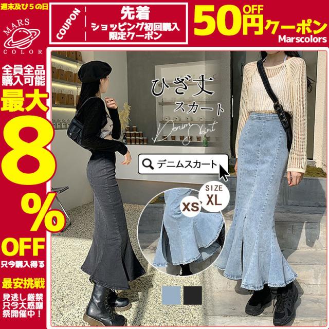 デニムスカート マーメイドスカート コーデ トレンドライク ストレッチ タイト ロング 膝丈 ジーンズ 美しい スリット 着回し ゆったり
