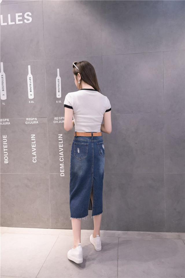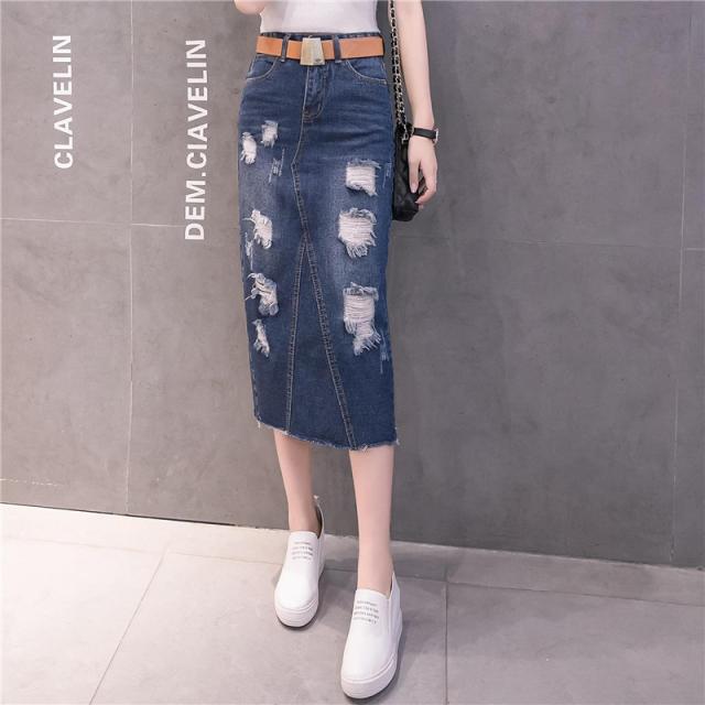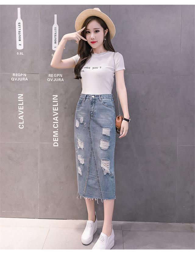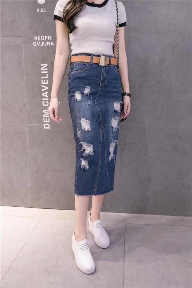 デニムスカート ひざ丈スカート コーデ トレンドライク ストレッチ ボトムス ロング 膝丈 ジーンズ 美しい 着痩せ 着回し ダメージ