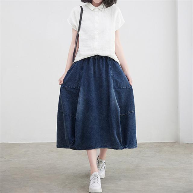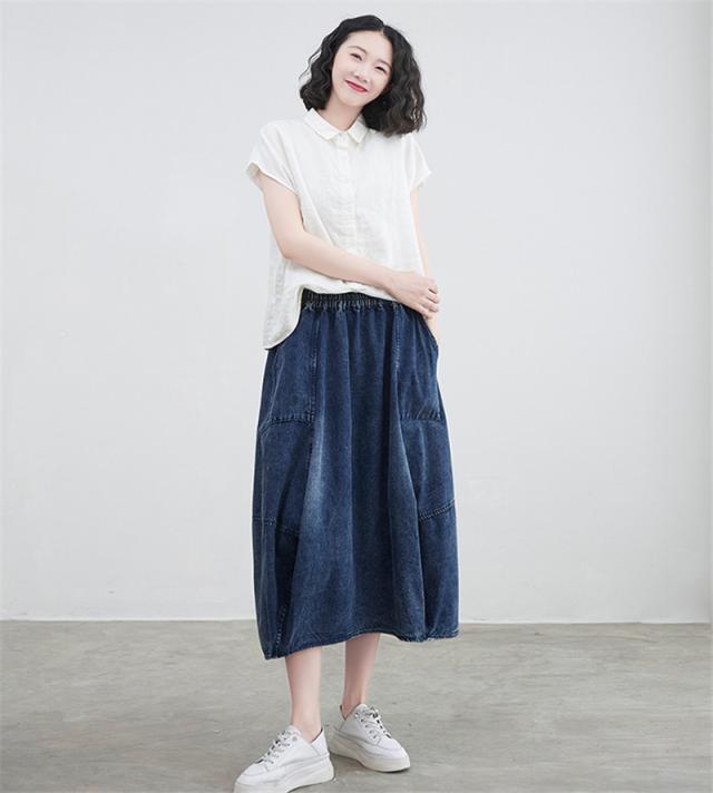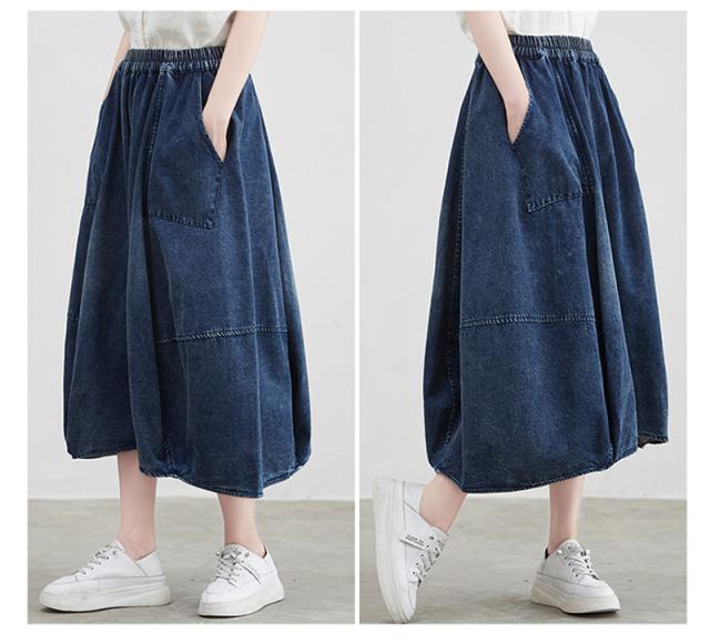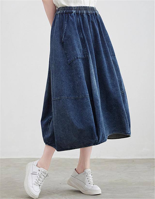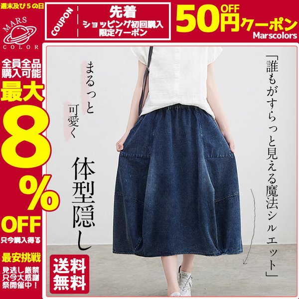 デニムスカート ひざ丈スカート コーデ オールシーズ ナチュラル 膝丈 シンプル ボトムス ロング ジーンズ 美しい 着痩せ 体型カバー カジュアル