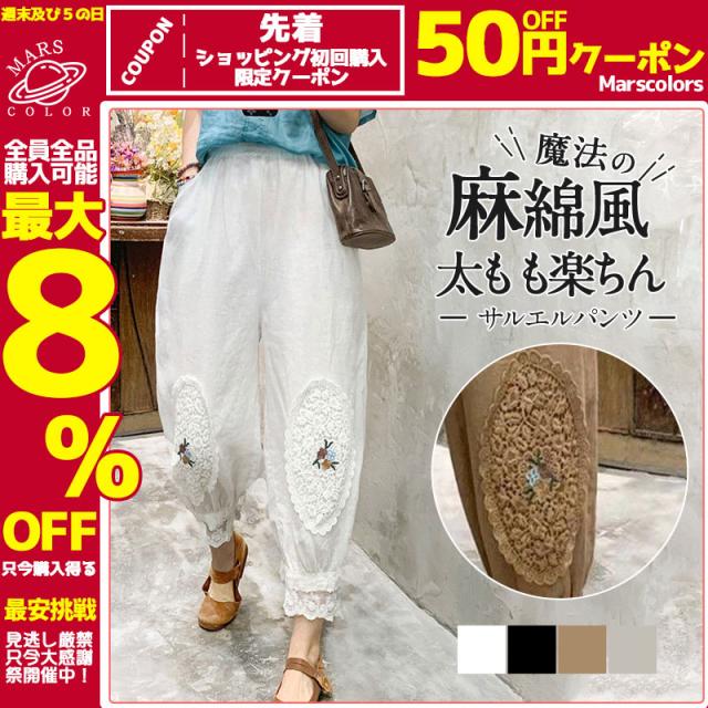 サルエルパンツ パンツ ボトムス 透けない チノパン 美脚 夏 ウエストゴム カジュアル ぽっちゃり 体型カバー 涼しい 送料無料 柔らかい 麻綿風