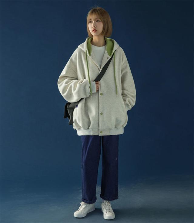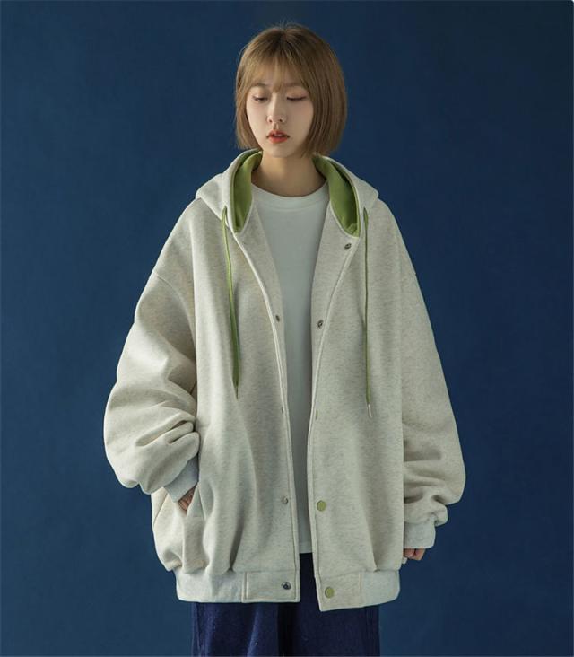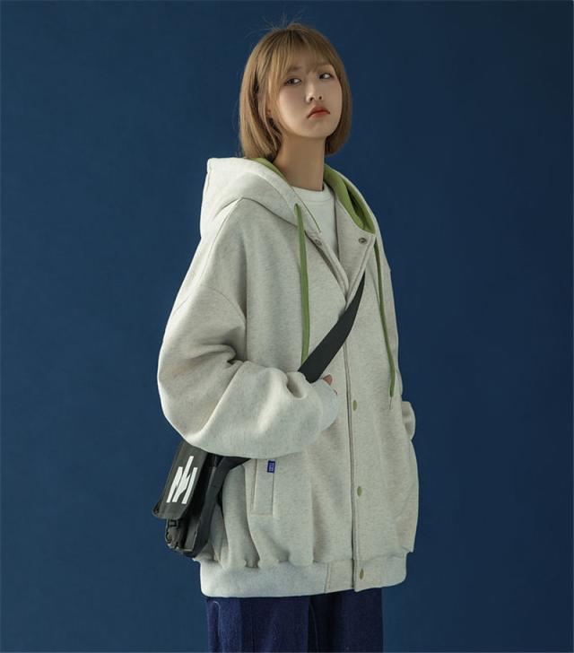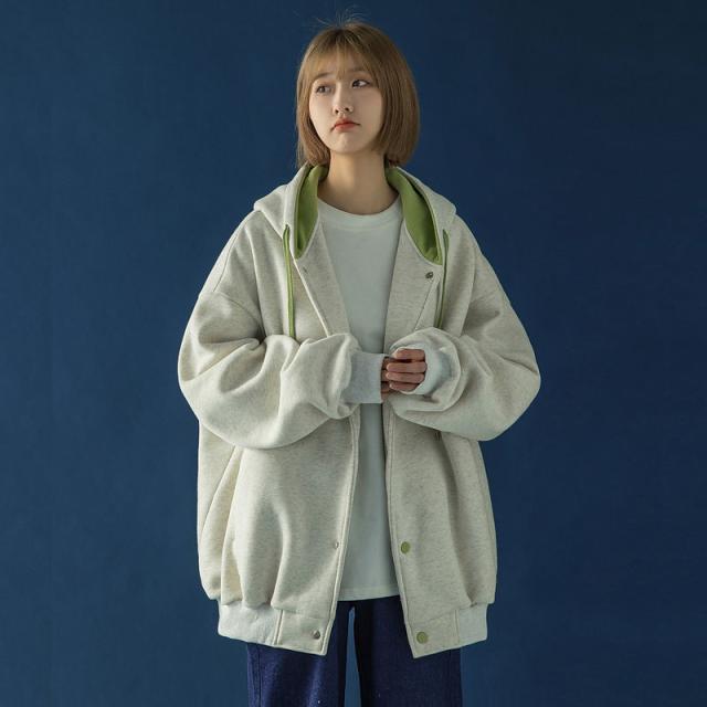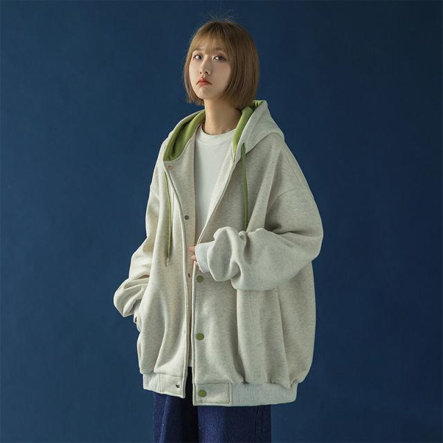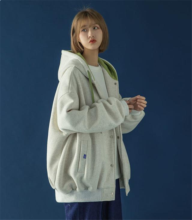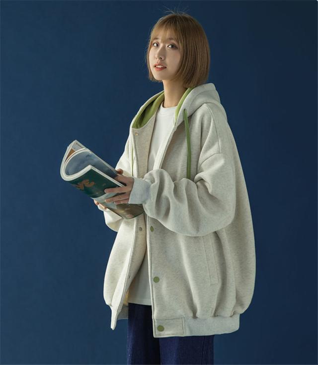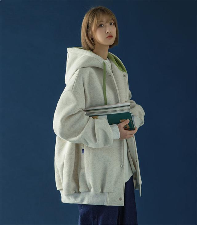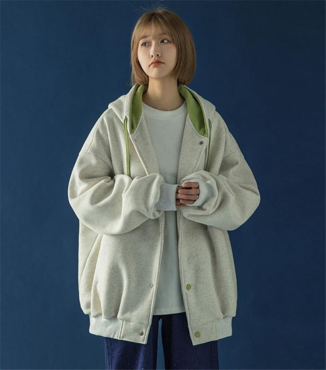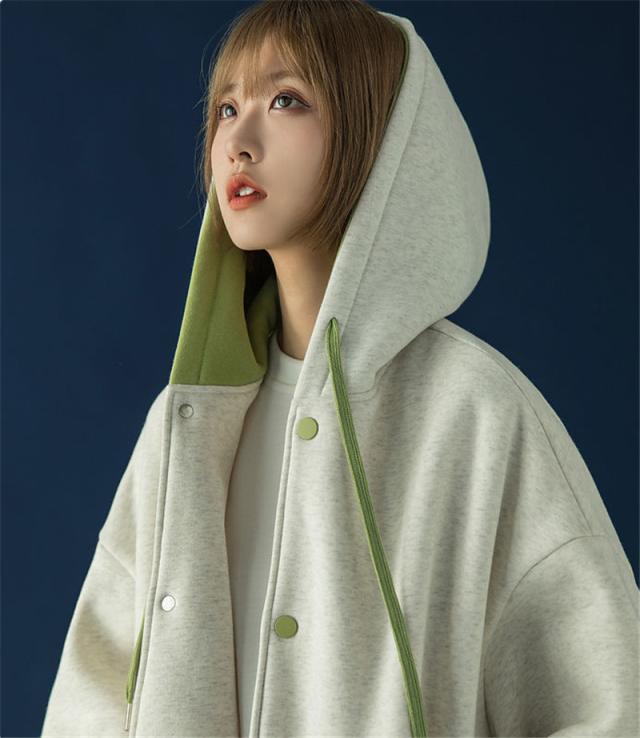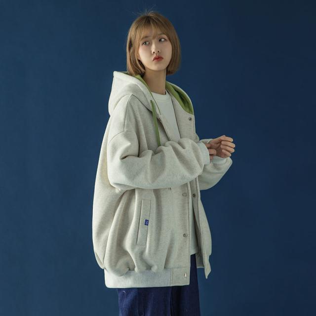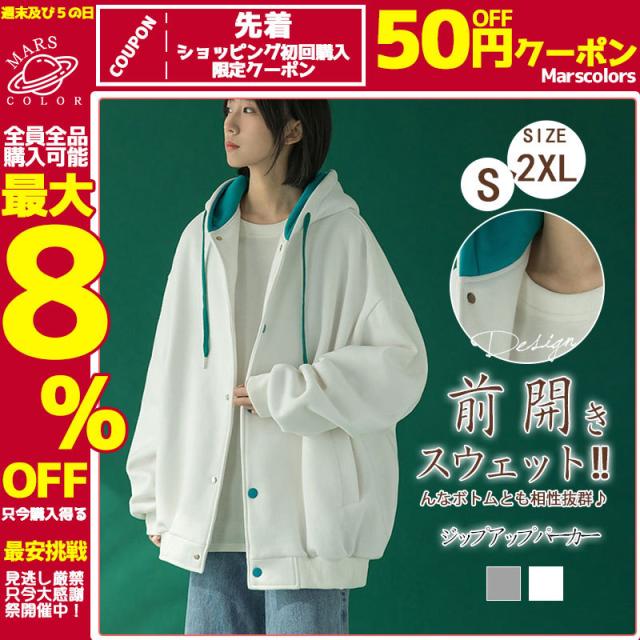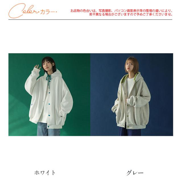 スウェット パーカー レディース 長袖 トップス カバー トレーナー 前開き ボタン付き 体型カバー 羽織り カジュアル フード付き 着やせ シンプル