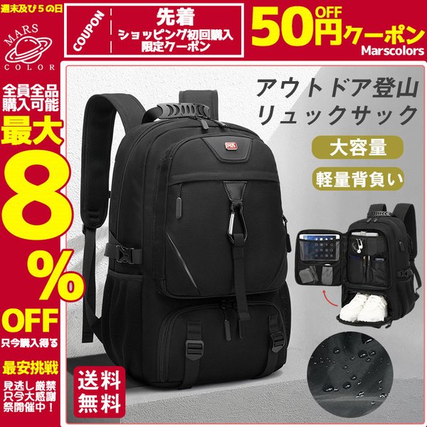 登山リュック リュック バックパック リュックサック メンズ 靴入れ 大容量 耐摩擦 ミリタリー キャンプ 撥水 アウトドア タウンユース 送料無料