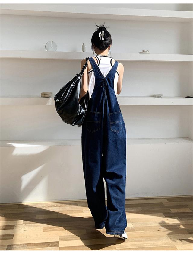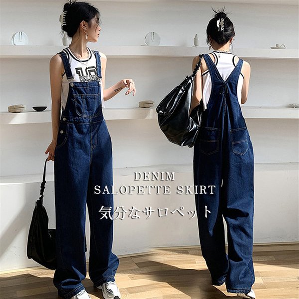 デニムサロペット オーバーオール オールインワン レディース デニムパンツ ワイドパンツ 作業服 ガウチョ サルエルパンツ 楽ちん ゆったり 送料無料
