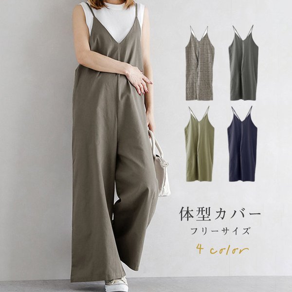 サロペット オーバーオール オールインワン レディース パンツ ワイドパンツ 作業服 ガウチョ サルエルパンツ 楽ちん ゆったり 体型カバー 送料無料