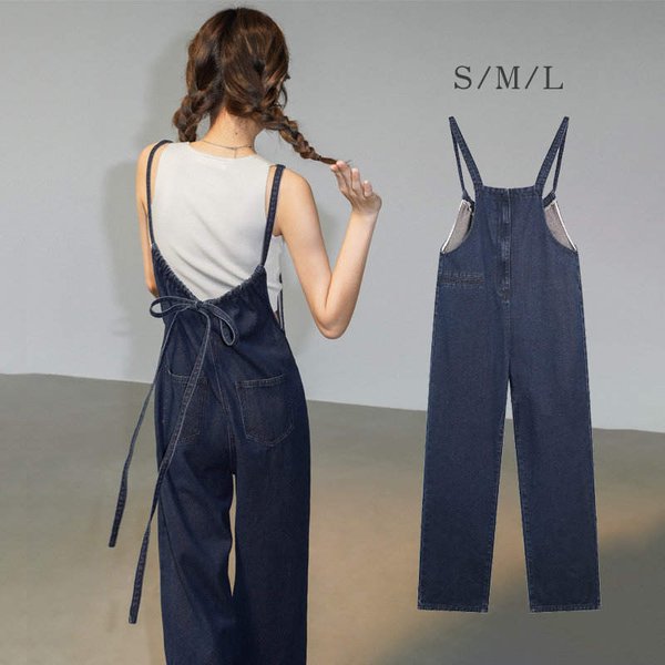 デニムサロペット オーバーオール オールインワン レディース デニムパンツ ワイドパンツ 作業服 ガウチョ サルエルパンツ 楽ちん ゆったり 送料無料