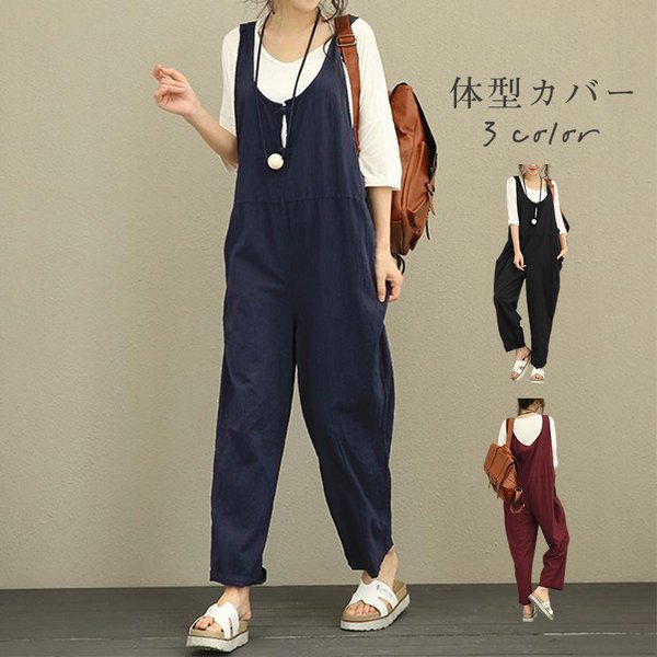 サロペット オーバーオール オールインワン レディース パンツ ワイドパンツ 作業服 ガウチョ サルエルパンツ 楽ちん ゆったり 体型カバー 送料無料
