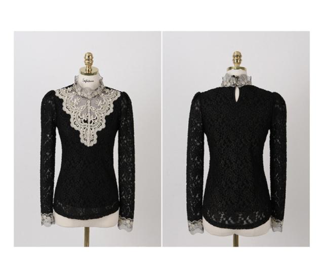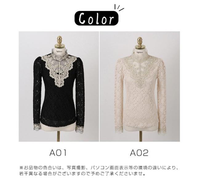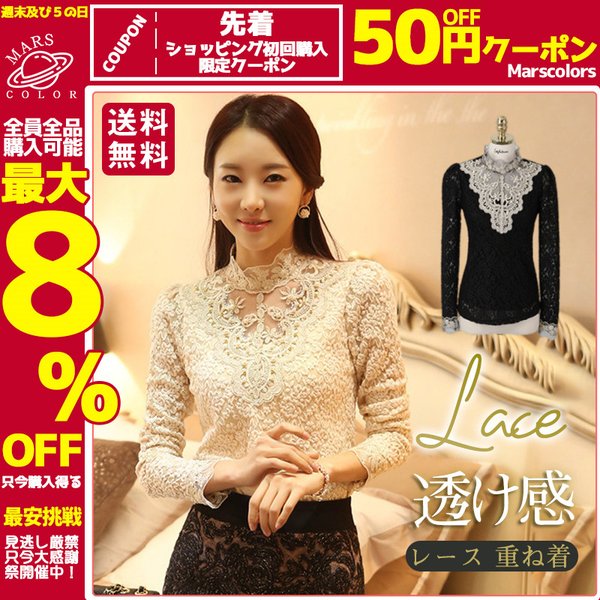 インナーシャツ レース 重ね着 Tシャツ ブラウス シースルー レディース ハイネック ボトルネック チュール トップス 長袖 セクシー 送料無料