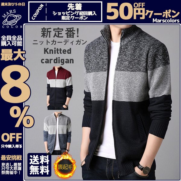 ニットカーディガン カーディガン メンズ 羽織り 前開き パーカー アウター 通勤 通学 ストレッチ 保温防寒 暖かい 裏起毛 送料無料