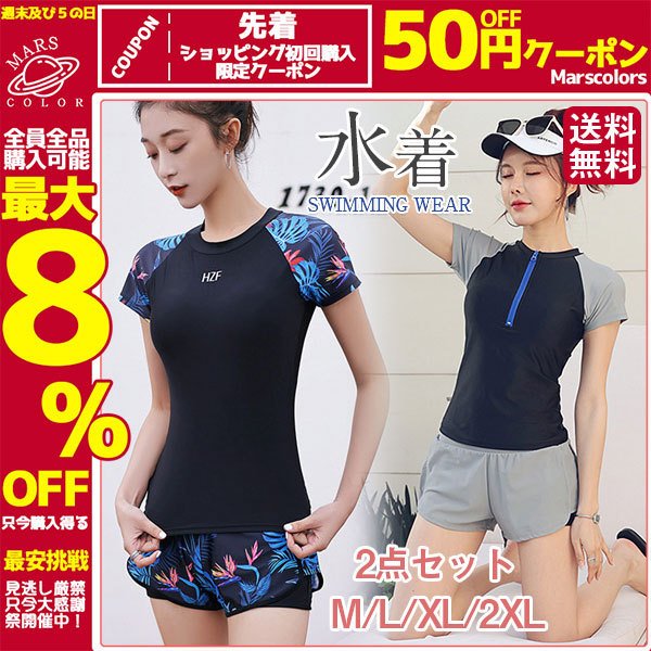 水着 レディース 水着セット スクール水着 2点セット タンキニ セパレート 速乾 ヨガ水着 ジム運動用 体型カバー 胸パッド ワイヤー無し 送料無料